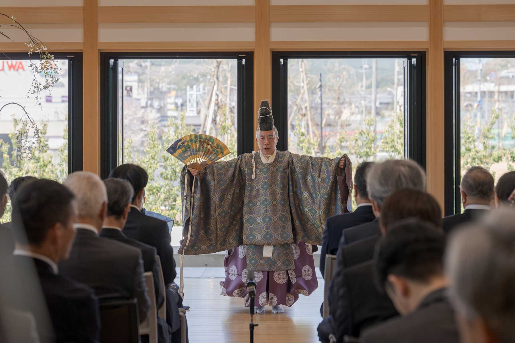 古くから能の文化が根付く宇陀の地での杮落としとして、京都観世流の能楽師による祝祷の儀礼演能「翁」を奉納。五穀豊穣を祝い、大地を踏みしめる荘厳な舞に、宇陀から新たな革新が芽吹く祈りを重ね合わせました。