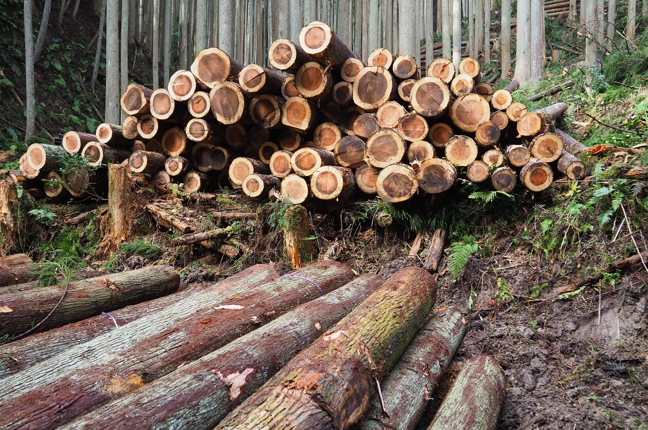 当施設を建設するにあたって、類設計室は自社で所有する宇陀市内の山の木を伐採し、資材として活用している。切り出した杉の木は、およそ400本。これらはメインとなるオフィスや宿泊施設の構造材や仕上げ材、家具の一部に使用される予定だ。自社の山から木材を調達する「地産地消」や、地元林業家の方との協業といった初の試みを実現するにあたって、現場で活躍したのが、伐採に関わった農園事業部の西谷だった。