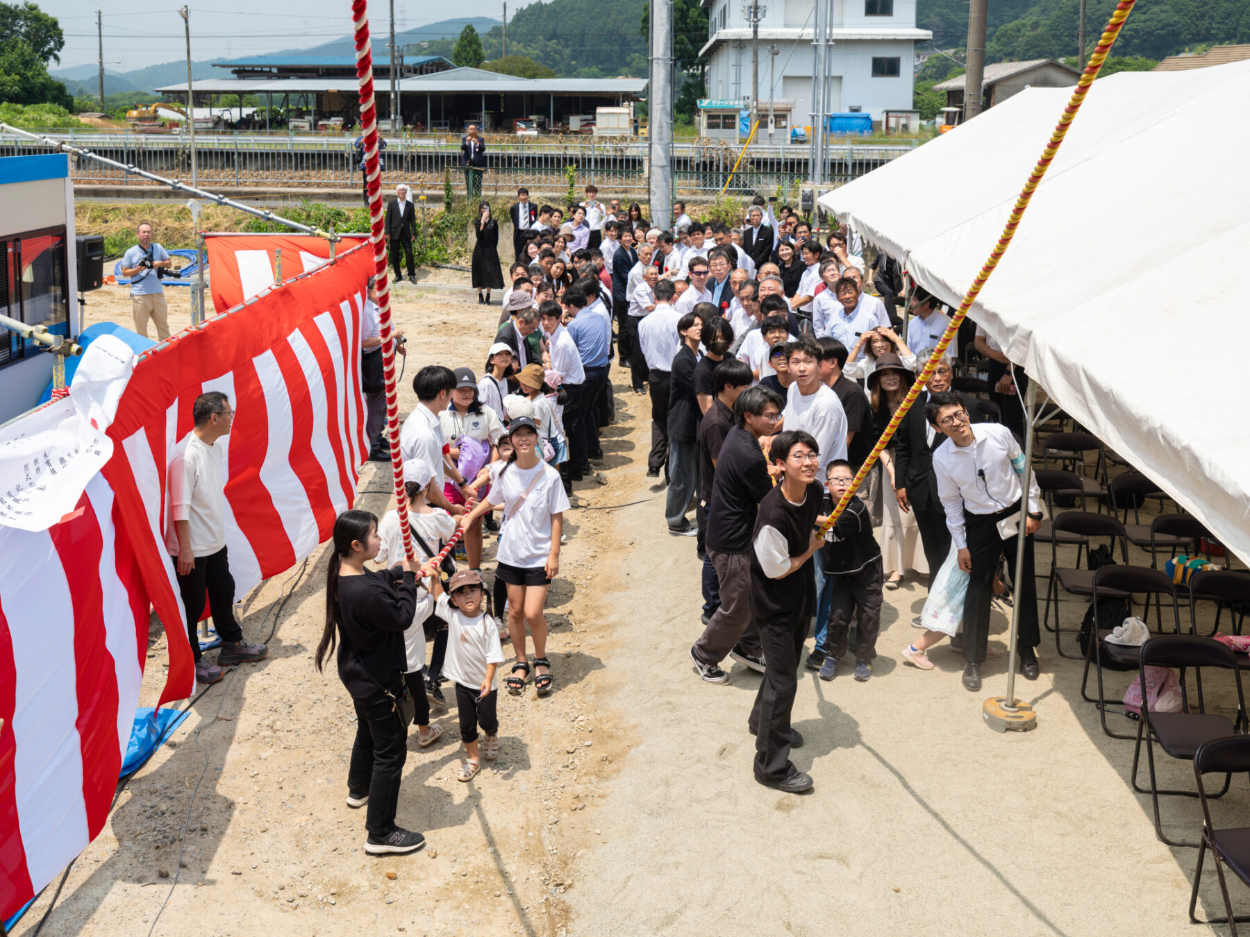 上棟式には、事業主として弊社代表取締役社長 阿部紘をはじめとする社員一同が参列。また設計施工関係者、弊社関係者、宇陀市関係者、類農園のある地元の関係者の皆様等にもご列席いただきました。参列者とご列席者を合わせて182名でした。